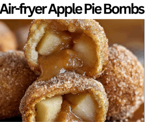 Air-fryer Apple Pie Bombs are a delicious and entertaining way to enjoy all the tastes of an apple pie without having to deal with the trouble of making your own pie. The apple pie filling is placed inside store-bought biscuit dough, which is then air-fried. The Air-fryer Apple Pie Bombs are coated with sugar and apple pie spices after being dipped in butter for taste. These are delicious and prepare quickly in only thirty minutes. Serve these bombs with vanilla ice cream or whipped cream for the tasty combination.