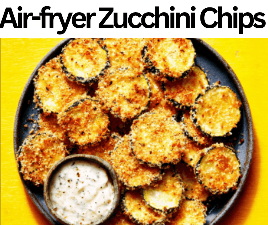 It is very simple to make these Air-fryer Zucchini Chips using only four ingredients and no breading. It contains garlic powder, zucchini slices, salt, olive oil, & pepper. Serve these chips with grilled chicken, or garlic dip.