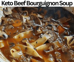 Keto Beef Bourguignon Soup with homemade gluten-free egg noodles is the savory, low-carb variety of a French classic. Its rich broth, mushrooms, & meat give each spoonful a hearty, comforting taste. Keto Beef Bourguignon Soup with homemade gluten-free egg noodles soaks up all of the delicious richness, which also keeps things light & keto-friendly. Each bowl offers the comfort of a slow-cooked stew without the weight of conventional flour-based recipes. It’s perfect for comforting evenings when you want a healthy meal that yet adheres to your diet objectives. Your kitchen has a wonderful aroma of meat, garlic, & herbs—it’s like comfort food in a pot. Leftovers are ideal for meal preparation and get even better the following day.