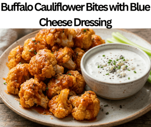 These Keto Buffalo Cauliflower Bites with Blue Cheese Dressing are a cheesy snack. We prepare these bites with Parmesan cheese, onion powder, cauliflower florets, black pepper, keto almond milk, almond flour, garlic powder, buffalo sauce, butter, egg, paprika, salt, heavy cream, blue cheese crumbles, mayonnaise, lemon juice, sour cream, and pepper. These bites contain 180 calories and 4 g of net carbs. You can make these bites earlier, as we store them in the freezer for 50-60 days. We make these bites in almost fifty minutes. These Keto Buffalo Cauliflower Bites with Blue Cheese Dressing are excellent for meals, celebrations, events, family get-togethers, friend parties, and weekend lunches. You can serve these bites with keto jalapeño poppers, keto bacon-wrapped asparagus, keto cauliflower mac and cheese, keto guacamole with veggie sticks, or keto lettuce wrap burgers.