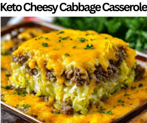 This Keto Cheesy Cabbage Casserole has a tarty flavor and tender texture. We prepare this cabbage casserole with sour cream, red pepper flakes, olive oil, ground beef, cheddar cheese, onion, cottage cheese, green cabbage, egg, garlic powder, onion powder, parsley, and green onions. This cabbage casserole contains 240 calories and seven grams of net carbs. We make this casserole in only twenty-eight minutes. This Keto Cheesy Cabbage Casserole is perfect for appetizers, parties, breakfasts, functions, lunches, gatherings, occasions, sides, and dinners. We store this cabbage casserole in the freezer for 60 days, so you can easily prepare it earlier. You can serve this cabbage casserole with grilled garlic butter chicken, cucumber yogurt dip, or roasted chicken thighs.