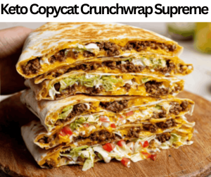 This Keto Copycat Crunchwrap Supreme has a savory taste and creamy cheese sauce. We prepare this supreme with taco seasoning, cheddar cheese, ground beef, keto tostada substitutes, olive oil, lettuce, keto cheese sauce, sour cream, salt, keto tortillas, pepper, and tomatoes. This supreme contains 420 calories and six g of net carbs. We make this supreme in just thirty minutes. This Keto Copycat Crunchwrap Supreme is excellent for appetizers, sides, busy days, breakfasts, get-togethers, festivities, dinners, events, activities, and dinner. To let you to make it sooner, we keep this supreme in the freezer for approximately fifteen to thirty days. You can serve this supreme with Spicy Chipotle Mayo, Garlic Butter Broccoli, Lettuce Wrap Cups, Loaded Cauliflower Mash, Sparkling Water with Lime, or Mini Crunchwrap Bites.