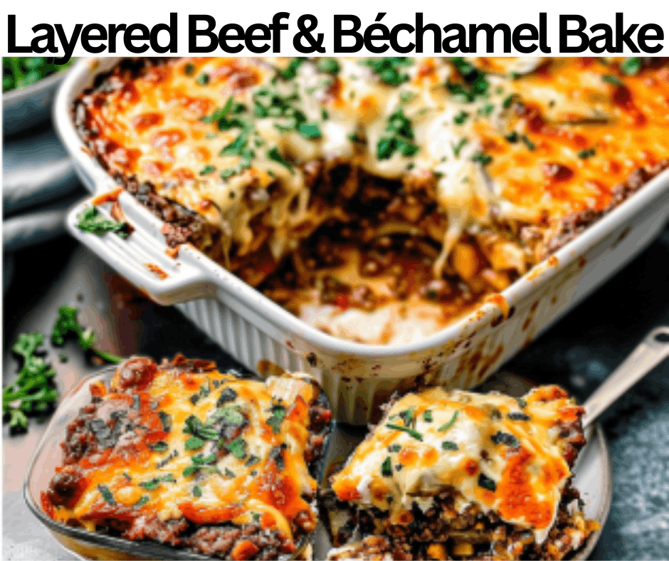 - Spread the béchamel on the beef, and include one layer of eggplant slices