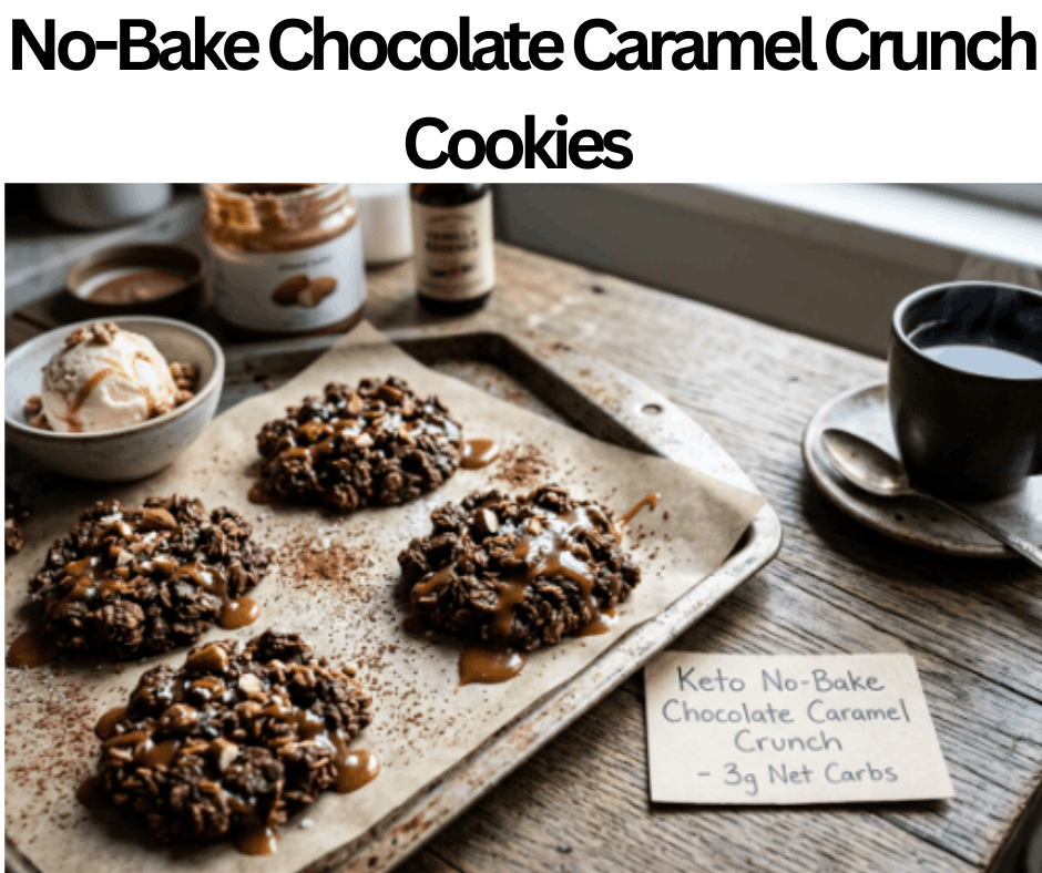 Keto No-Bake Chocolate Caramel Crunch Cookies are an indulgent dessert. It contains keto caramel sauce, almond butter, cocoa powder, keto cereal, vanilla essence, and Erythritol powder. These items are very simple and easily obtainable from any grocery store, or might even be present in our kitchen as well. Keto No-Bake Chocolate Caramel Crunch Cookies contain 3g net carbs in one serving, so we can easily have them without guilt. These cookies prepare quickly in just forty-five minutes; they’re perfect to make for a last-minute dessert. Serve these cookies with keto ice cream or coffee for the perfect combination.