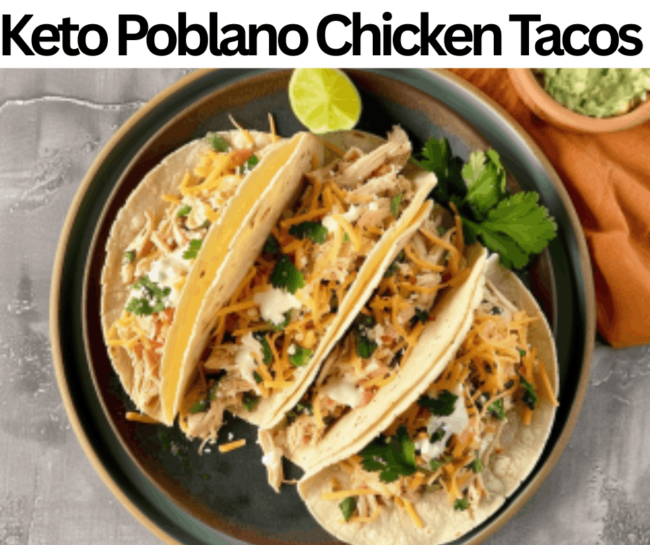 Keto Poblano Chicken Tacos are a savory meal with a reduced carb count. We make these tacos with several kinds of ingredients, such as poblano peppers, mozzarella cheese, sour cream, chicken breast, garlic powder, chili powder, smoked paprika, lime juice, & cilantro. These are the basic products that you have in your home. If they are unavailable, you can get them from markets. These tacos have six g of net carbs in one portion. Keto Poblano Chicken Tacos are ideal for lunches, occasions, sides, events, and dinners. We freeze cooked chicken filling separately for 2 months. These tacos require 45 minutes to prepare completely. They contain a fresh and creamy taste in all bites. Serve these poblano chicken tacos with avocado lime, keto chicken tortilla, guacamole, or cauliflower Mexican rice.