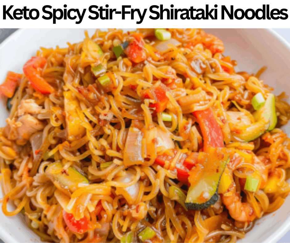 Keto Spicy Stir-Fry Shirataki Noodles is a delicious and flavorful dish while maintaining a low-carb count. We prepare these noodles by using different kinds of ingredients, such as shirataki noodles, garlic, chili garlic sauce, bell peppers, rice vinegar, avocado oil, chicken, ginger, green onions, zucchini, coconut aminos, erythritol powder, and red chili flakes. These noodles have 340 kcal of caloric content and four g of net carbs in one bowl of 1 portion. We don’t recommend storing these noodles in the freezer because the shiratki noodles will lose their texture and become rubbery, but we can store them in the fridge for 3 days. These noodles take almost twenty-five minutes to prepare. Keto Spicy Stir-Fry Shirataki Noodles are best for weekday lunches, short events, snacks, gatherings, and dinners. You can make these noodles for a quick supper or lunch. Serve them with chili garlic shrimp, stuffed mushrooms, or lettuce wraps.