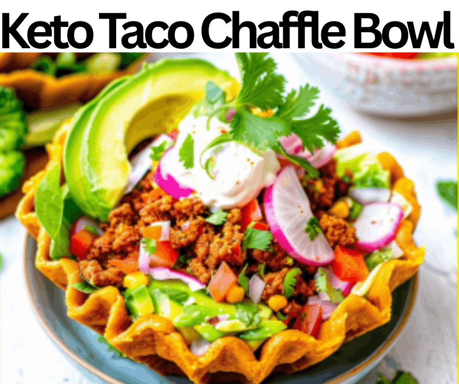 Keto Taco Chaffle Bowl is a savory and delicious dish with minimal carbs. Make this bowl with simple components, such as sour cream, ground beef, cheese, lettuce, avocado, cilantro, olive oil, seasoning, water, and almond flour. All of these different kinds of ingredients may be present in your home, or you can easily purchase them from the stores. This dish requires twenty-five minutes to fully prepare with easy methods. It has a crispy and creamy texture that provides a smooth taste in every single bite. It stores easily for one month in the freezer. Keto Taco Chaffle Bowl is perfect for weekdays, lunch, events, gatherings, and dinners. Top this bowl with cilantro and pair it with garlic broccoli or salad. It simply prepares before the time.