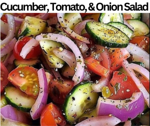 Keto cucumber, Tomato, and Onion Salad is a tasty and flavorful dish while maintaining low-carb content. It combines tomatoes, cucumbers, and onions in a simple dressing that maintains their acidity, freshness, and clean flavor. It is perfect to prepare for a quick prep meal. This salad is ideal for weekdays, for lunch, and family gatherings; it takes a few minutes to prepare, and it goes well with almost any keto dinner. Keto cucumber, Tomato, & Onion Salad has a fresh flavor and pairs well with heavier proteins like grilled meats or creamy keto recipes. We use some ingredients such as apple cider vinegar, tomatoes, red onion, cucumber, and olive oil. Each component contributes something unique, yet the overall salad easily fits into your daily macros. We don’t recommend freezing this salad because when the vegetables freeze, they lose their firmness and get watery.