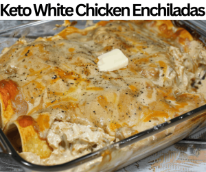 Keto White Chicken Enchiladas have a strong and rich taste with no extra carbs. We make this dish with the use of many ingredients, such as chicken breast, heavy cream, cumin, cheddar or Monterey Jack cheese, garlic powder, keto tortillas, black pepper, butter, cream cheese, green chilies, onion powder, sour cream, mozzarella cheese, and salt. All these components are simple, and you may already have them in your home kitchen; if they are not available, you can easily purchase them from the store or markets. These enchiladas can be prepared earlier with basic methods. We can freeze the unbaked enchiladas for twenty to thirty days. Keto White Chicken Enchiladas are good for weekday lunches, events, family parties, and dinners. We completely prepare these enchiladas in almost 40 minutes. They contain 430 kcal of caloric content and 5 g of net carbs in 2 enchiladas of one portion size.