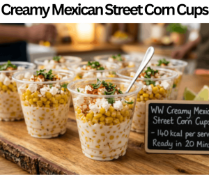 Your WW Creamy Mexican Street Corn Cups contain 140 kcal per serve. It is a very tasty snack for Weight Watchers. You will prepare this in only 20 minutes. Serve these WW Creamy Mexican Street Corn Cups for parties, light meals, snacking, occasions, or events. The kitchen tools for making these cups are not a lot. Also, you may pair them with tacos, burgers, grilled chicken, or as a salad topping. The instructions to make this recipe are simple, too. We will add corn kernels, low-fat plain yogurt, light mayonnaise, reduced-fat feta cheese, lime juice, chili powder, paprika, garlic powder, salt, and chopped fresh cilantro. Keep this snack chilled in a dish for three days, too.
