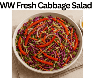 WW Fresh Cabbage Salad Recipe is a fresh, light, and simple dish. This salad recipe includes shredded cabbage, fresh vegetables, and a simple, tangy dressing as the main ingredients to make this dish appear refreshing to the consumer, yet satisfying enough. The cabbage mixed bite is quite good with carrots, peppers, and onions, whereas the dressing binds it all together without the excessive calorie content. This WW Fresh Cabbage Salad is a great recipe that fits in well with the representatives of Weight Watchers since the meal is low in points and has plenty of fiber that will keep you on course.