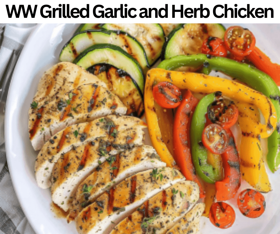 This recipe for WW Grilled Garlic and Herb Chicken with veggies is a tasty, filling, and light meal that works well throughout the year. For a nutritious, well-balanced meal, moist chicken breasts are marinated in a straightforward mixture of herbs and garlic before being grilled with vibrant vegetables. This WW Grilled Garlic and Herb Chicken with veggies is perfect for a weekend cookout or a quick family dinner because it uses lean protein, fresh produce, and little oil, giving you all the flavor without the guilt.