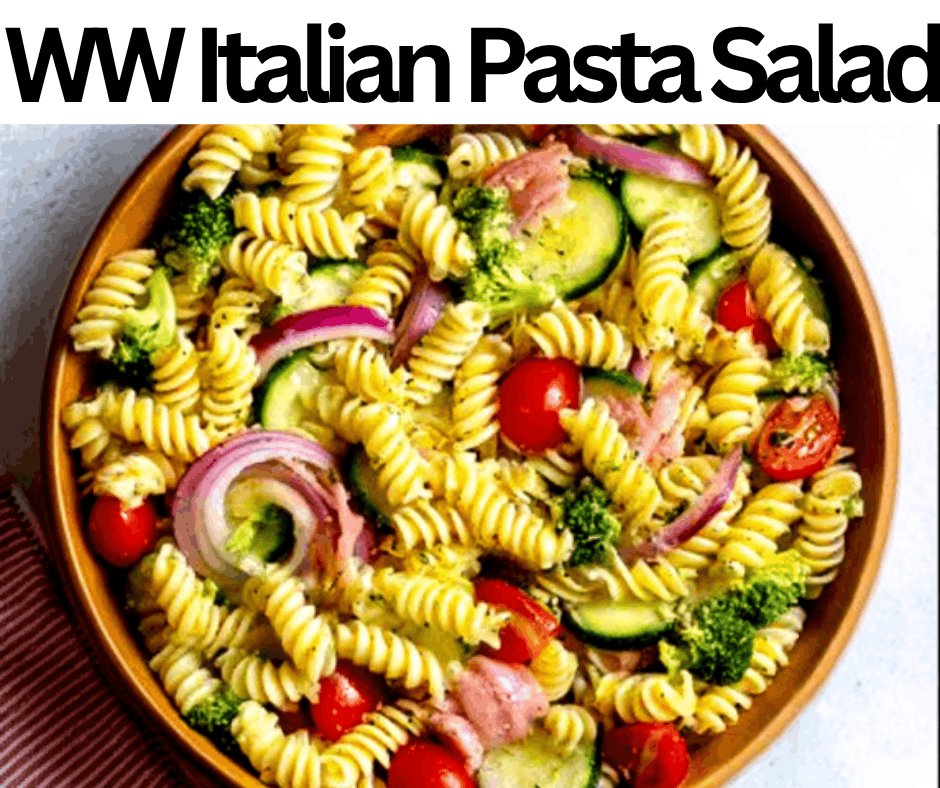 The WW Italian Pasta Salad is a delicious salad. You can make this in 25 minutes. The calories are 140 kcal per serving. Serve your WW Italian Pasta Salad as a side dish, a light meal, a family dinner, a guest gathering, on occasions, events, or parties. Also, pair your recipe with grilled chicken, boiled eggs, vegetable soup, a whole wheat sandwich, fruit, or roasted vegetables. Preparing this salad will not take too much effort, and the steps are also easy. Here, we will use rotini pasta, cherry tomatoes, cucumber, red bell pepper, red onion, low-fat mozzarella cheese, parsley, seasonings, fat-free Italian dressing, red wine vinegar, and Dijon mustard. Refrigerate your salad in a box for only three days.