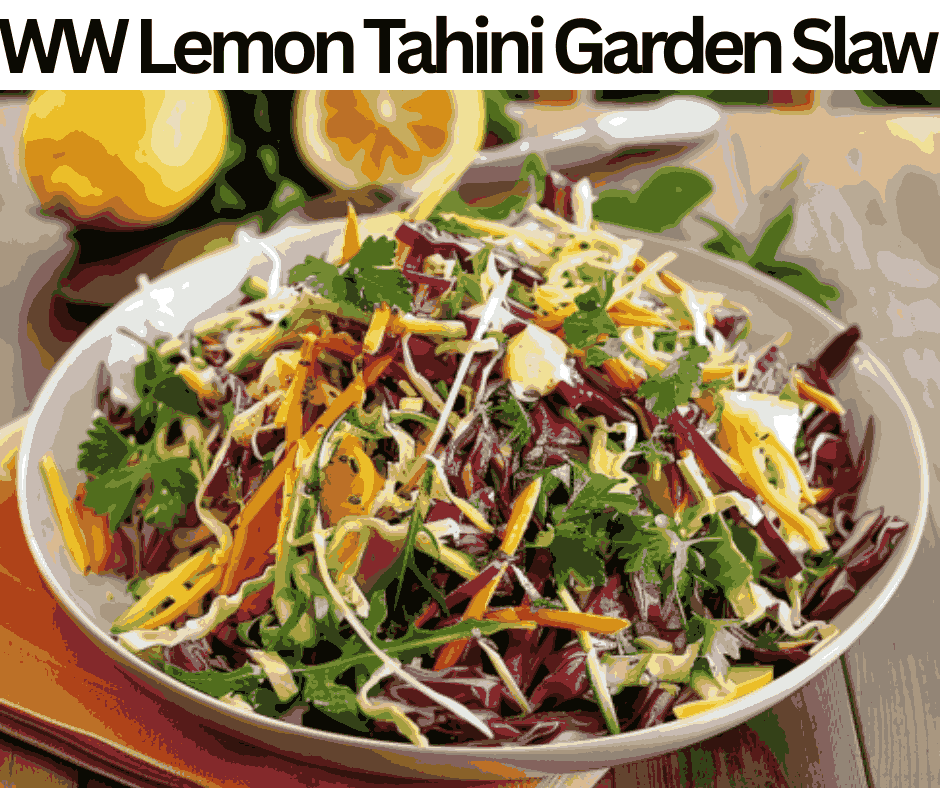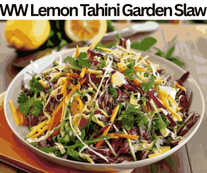 WW Lemon Tahini Garden Slaw is a refreshing salad. It is light but satisfying dish. We can easily have this dish in lunch or as a side. The salad is prepared with a combination of fresh, crispy vegetables like carrots, different colors of cabbage, parsley, and cucumber. Then we prepare the dressing with lemon juice, tahini, water, garlic, and oil. These ingredients are very simple yet prepare a very delicious dish. They are available easily in any market or even at home. This salad doesn’t require any cooking, so it gets done in only 15 minutes.