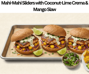 The WW Mahi-Mahi Sliders with Coconut-Lime Crema & Mango Slaw are a delicious dish. It contains 275 kcal per serve. Also, it will be prepared in just 35 minutes. Serve this WW Mahi-Mahi Sliders with Coconut-Lime Crema & Mango Slaw on occasions, family gatherings, or parties. Also, pair this dish with salads, grilled corn, or avocado slices. Here, we will use mahi-mahi fillets, seasonings, plain nonfat Greek yogurt, light coconut milk, lime juice, lime zest, shredded cabbage, diced mango, shredded carrots, whole wheat slider buns, and chopped cilantro. Keep this in a closed container to chill for three days, too.