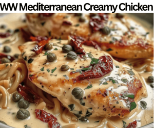 The WW Mediterranean Creamy Chicken with sun-dried tomatoes & capers is a dish that you can enjoy with light ingredients in place of classic heavy ingredients that we normally use in such dishes. This recipe uses skim milk, cooking spray, and reduced-fat cream cheese. It also includes delicious garlic, herbs, capers, and sun-dried tomatoes. All of the above ingredients that the recipe uses make sure that the calories are low, and they reduce WW points as much as possible. 30 minutes is the time for this dish to prepare. Not only is the WW Mediterranean Creamy Chicken with sun-dried tomatoes & capers a light and delicious option for Weight Watchers, but it is also a healthy dish.