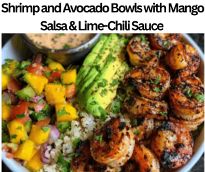 - Assemble shrimp, sliced avocado, and mango salsa on the bowls as well.